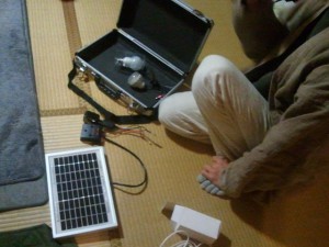 締めはモモの家らしく音楽で♪ソーラーパネル研究者・ボブさんが自作の「太陽電池の唄」を熱唱してくれました。